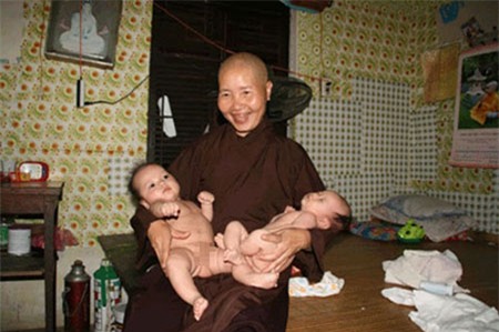 Ảnh năm 2007 chứng minh sự tồn tại của Tùng Anh và Việt Anh tại Chùa Bồ Đề, được nuôi dưỡng (trong ảnh là sư Cô) |