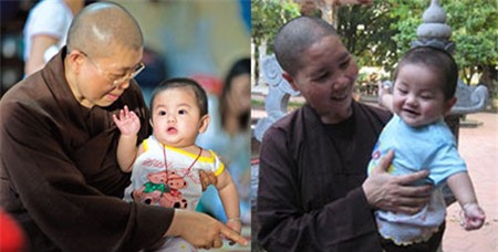 Ảnh chứng minh bé Việt Anh được sư Đàm Lan và sư cô nhận nuôi dưỡng, chăm sóc tại chùa Bồ Đề |