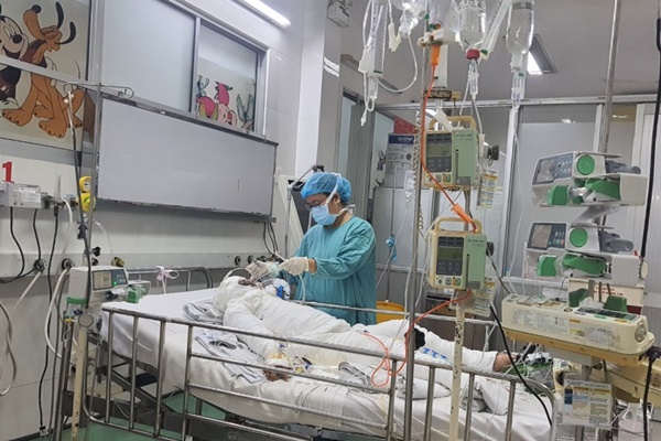 Bệnh nhi M. đang được điều trị tại Bệnh viện Nhi đồng 1 TP.HCM.