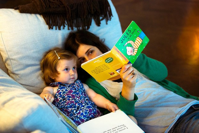 Các bác sĩ nhi khoa khuyên cha mẹ nên đọc to, hát, kể hoặc nói chuyện với con bằng tiếng mẹ đẻ để trẻ tiếp xúc ngôn ngữ phong phú và phức tạp. Ảnh: WP.