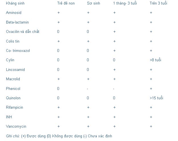 Các loại kháng sinh có thể sử dụng cho trẻ tùy theo độ tuổi