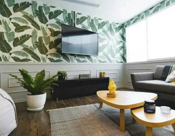 Treo TV trên tường có thể tiết kiệm không gian phòng khách, và nó cũng có thể làm cho toàn bộ phòng khách trông rất nhiều lớp, và tăng diện tích phòng khách một cách trực quan, rất thông thoáng.
