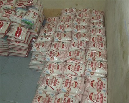 Bao bì bột ngọt mang các nhãn hiệu nổi tiếng được các đối tượng trong đường dây nhập về từ TP.Hồ Chí Minh. |