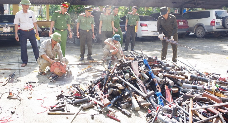 Công an tiêu huỷ hàng nghìn vũ khí, trong đó có hơn 400 khẩu súng, 23 bệ pháoCông an tỉnh Hà Nam vừa tổ chức tiêu huỷ hàng nghìn vũ khí, vật liệu nổ, công cụ hỗ trợ và pháo, trong đó có 416 khẩu súng các loại.