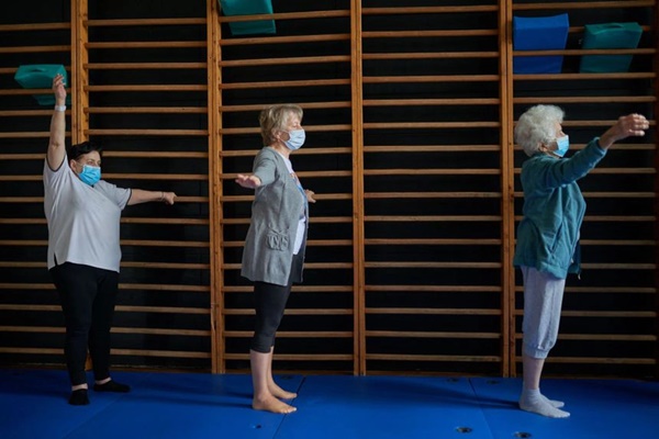 Các bệnh nhân tham gia chương trình phục hồi chức năng sau khi mắc Covid-19 vào tháng 5 tại một bệnh viện ở Ba Lan. Ảnh: AFP.