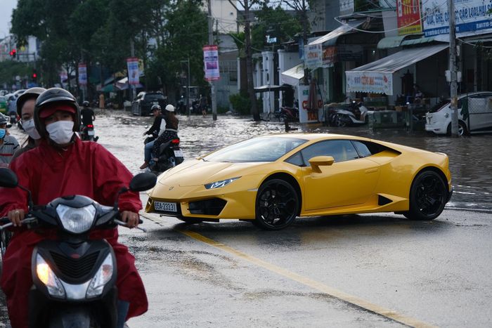 Thấy nước ngập sâu trên đường Nguyễn Văn Cừ, đoạn gần cầu Cồn Khương, người điều khiển siêu xe quay đầu tìm lối đi khác để tránh làn nước ngập.