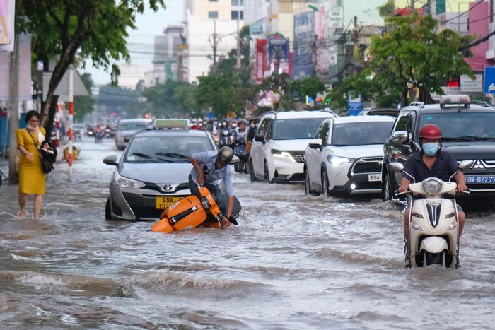 Khoảng 16h chiều nay, ghi nhận trên đường Nguyễn Văn Cừ, phường Cái Khế, quận Ninh Kiều (TP Cần Thơ), nhiều đoạn nước ngập sâu hơn 0,7 m. Người dân không thể điều khiển xe cộ đi qua các khu vực ngập sâu.
