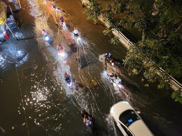 Hơn 19h30 tối nay (27/11), nhiều khu vực ở TP.HCM vẫn ngập sâu như Trần Xuân Soạn, Đào Sư Tích, Huỳnh Tấn Phát, Nguyễn Bình, Lê Văn Lương, Quốc lộ 50, Phạm Hữu Lầu... khiến người dân đi lại rất khó khăn. Hai bên đường, hoạt động kinh doanh bị "đóng băng", nhiều gia đình bị nước triều cường dâng vào nhà khiến sinh hoạt bị đảo lộn.