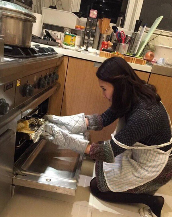 Lê Tư vẫn đảm đang việc nhà dù làm vợ đại gia.