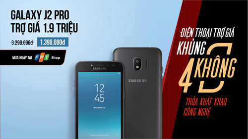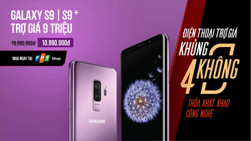 Từ tháng 4/2018, FPT Shop triển khai chương trình bán điện thoại trợ giá 4 KHÔNG, mức trợ giá lên đến 9.000.000đồng tuỳ theo điện thoại và thêm nhiều khuyến mãi hấp dẫn khác. Khách hàng có thể sở hữu điện thoại Samsung từ bình dân đến cao cấp, từ Galaxy J2Pro, Galaxy J7Prođến siêu phẩm vừara mắt là Galaxy S9/S9+, đặc biệt màu tím li lắc - phiên bản 128 GB với giá hấp dẫn kết hợp cùng nhiều lựa chọn gói trợ giá với cước hàng tháng linh hoạt từ 98 ngàn đến 990 ngàn của hai nhà mạng Vietnamobile và MobiFone trong thời hạn 12 tháng. Chi tiết gói trợ giá khủng “4 Không” tại: https://FPT Shop.com.vn/ctkm/uu-dai-samsung |