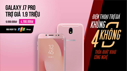 Từ đầu tháng 4, chương trình trợ giá điện thoại được FPT Shop triển khai cho tất cả các dòng điện thoại Samsung như Galaxy S9/S9+, Galaxy Note 8, Galaxy S8/S8+, Galaxy A8/A8+, Galaxy J7 Prime, Galaxy J7 Pro, Galaxy J7+, Galaxy J3 Pro, Galaxy J2 Pro với mức trợ giá linh động cho khách hàng chọn lựa, tuỳ vào mức cước điện thoại mỗi tháng và số tiền trợ giá lên đến 9 triệu đồng và thêm nhiều khuyến mãi hấp dẫn khác.
