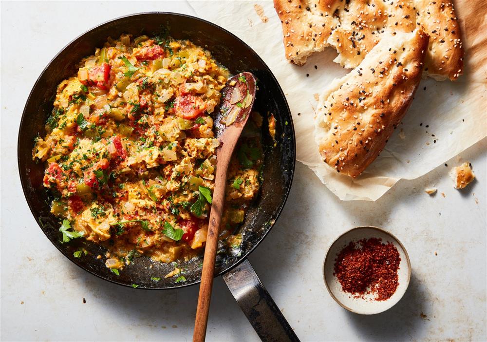Menemen là món ăn truyền thống của Thổ Nhĩ Kỳ. Thành phần gồm trứng, hành tây, cà chua, ớt xanh và các loại gia vị. Món này thường được thưởng thức ngay khi nóng kèm với bánh mì.