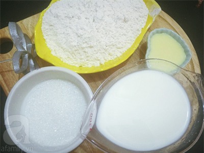 ![]() Nguyên liệu cần chuẩn bị để làm bánh nhúng gồm: 150g bột mì 200ml sữa tươi không đường 50g sữa đặc 50g đường 2 quả trứng Vài giọt vani Khuôn bánh nhúng (mua ở các hàng tạp hoá) |