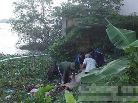 Sau khi phát hiện thi thể và vớt lên bờ thì người dân phát hiện hai chân của nạn nhân bị trói lại bằng dây dù và cột vào gạch ống.