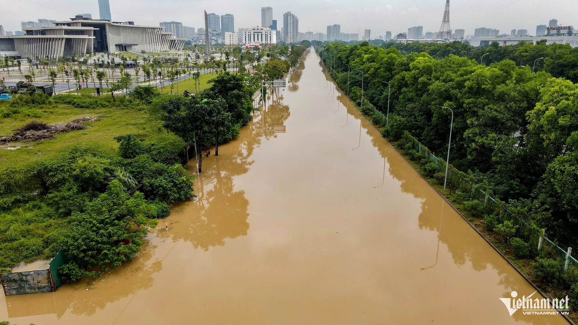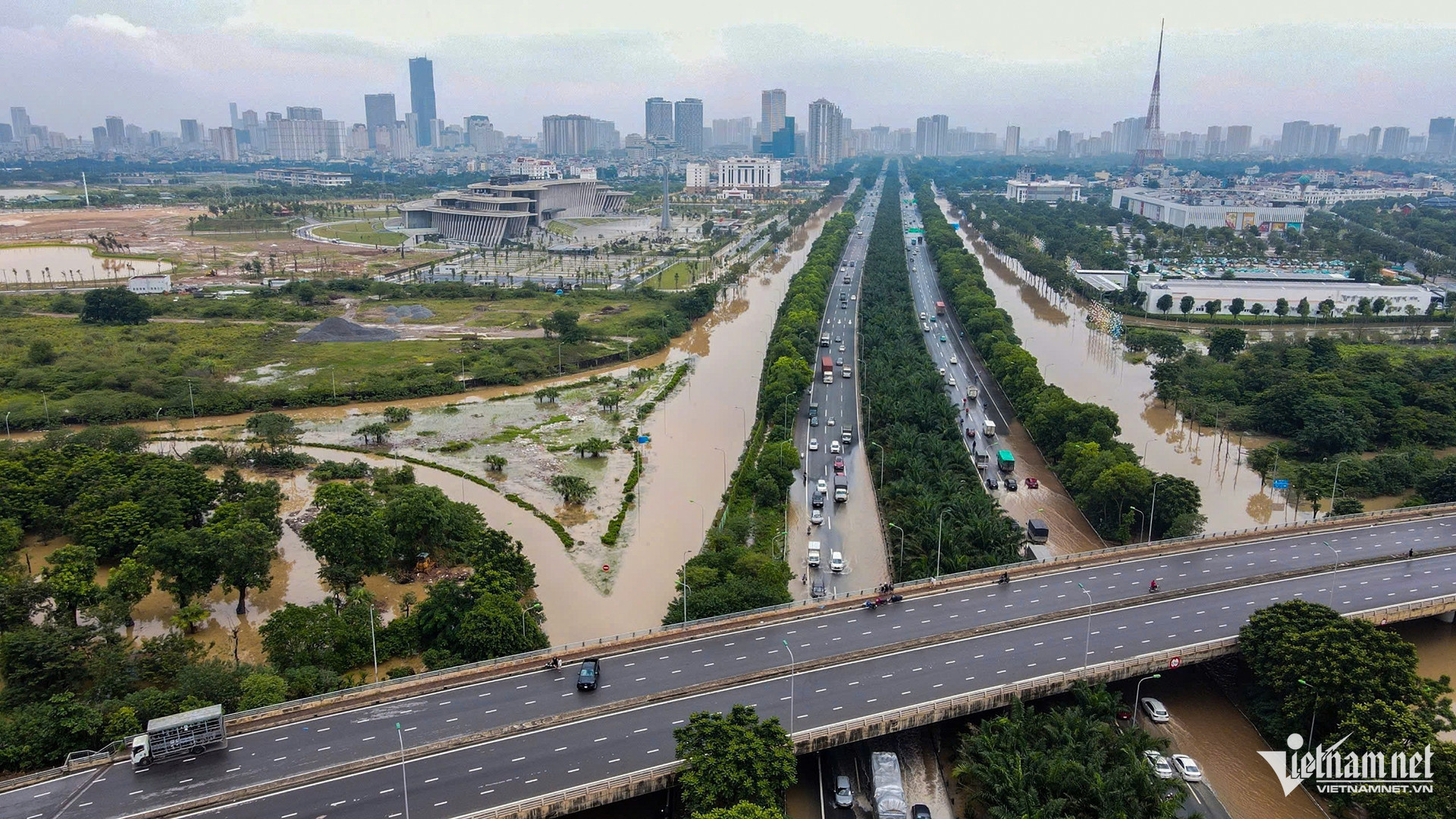 Tại đại lộ Thăng Long, đoạn giao phường Xuân Phương và phường Tây Mỗ chưa kịp khô ráo sau đợt ngập sâu ngày 30/9, nay lại tái ngập.