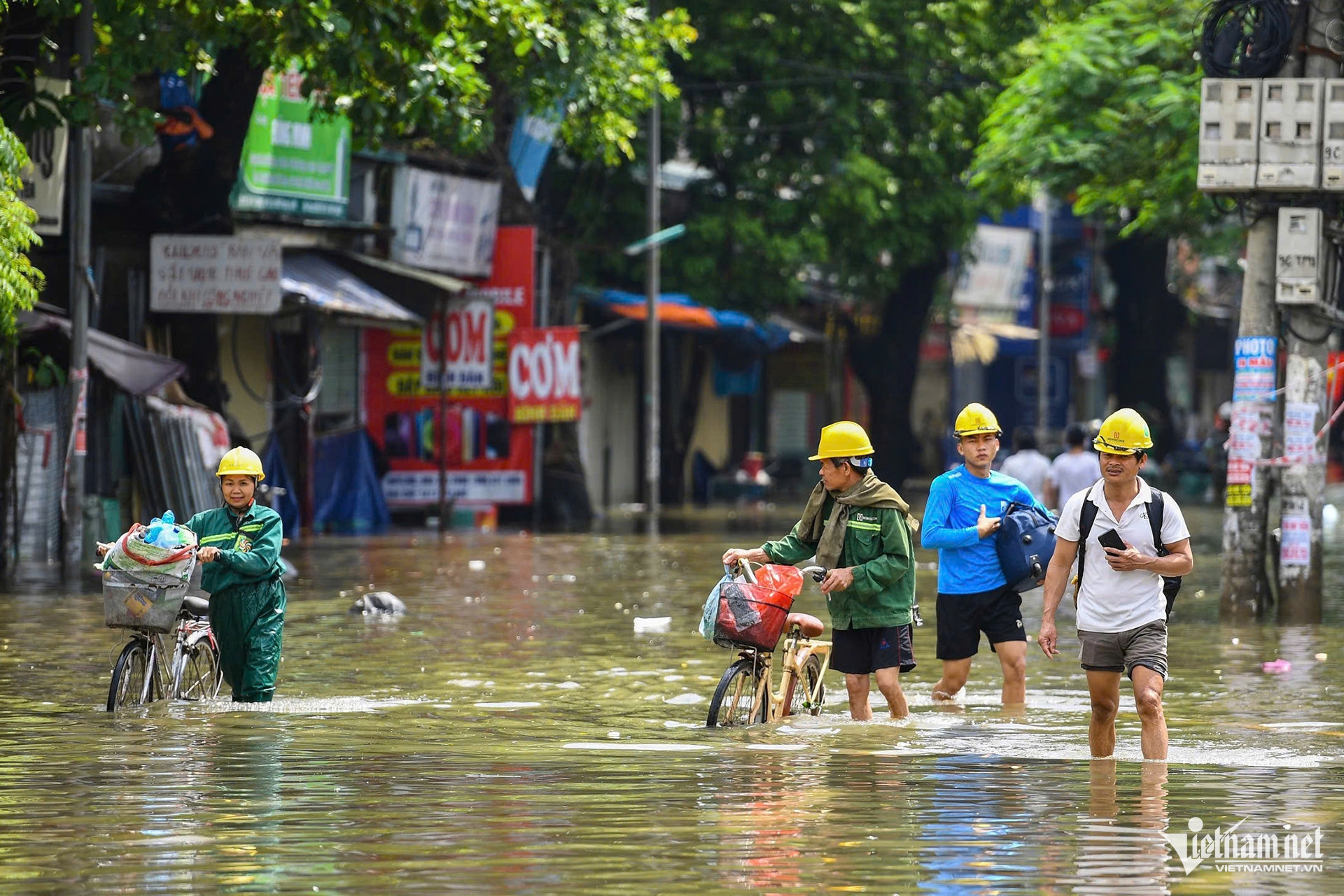 Người dân ở đây chỉ có thể đi lại bằng cách bộ lội hoặc đạp xe.