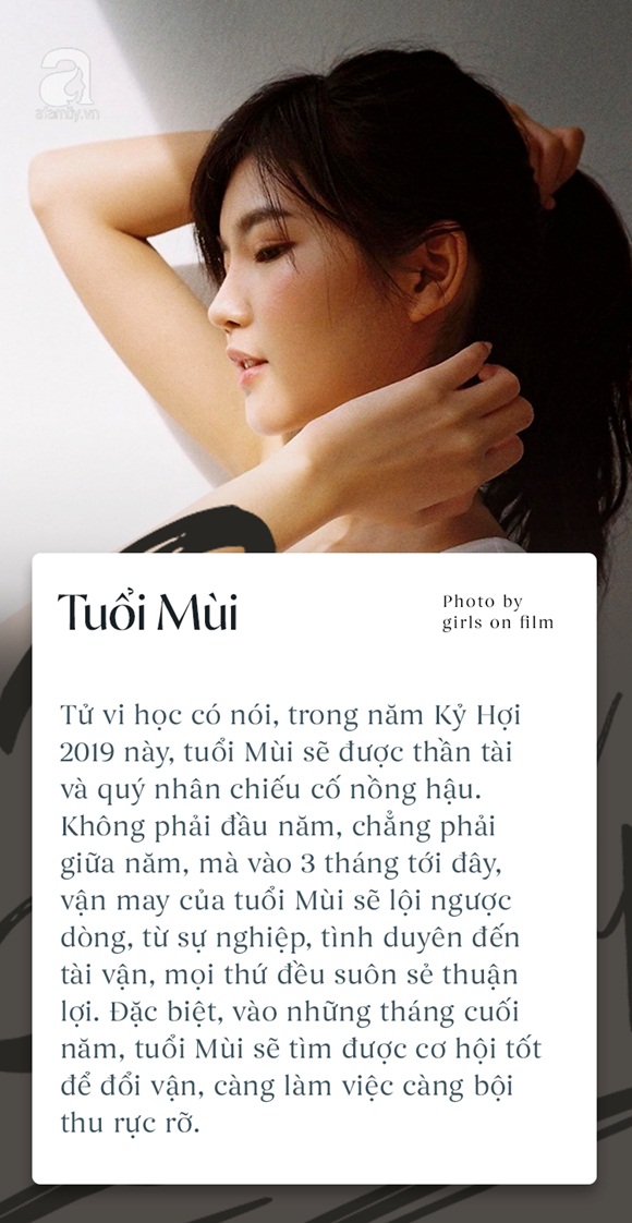 Tử vi học có nói, trong năm Kỷ Hợi 2019 này, tuổi Mùi sẽ được thần tài và quý nhân chiếu cố nồng hậu. Không phải đầu năm, chẳng phải giữa năm, mà vào 3 tháng tới đây, vận may của tuổi Mùi sẽ lội ngược dòng, từ sự nghiệp, tình duyên đến tài vận, mọi thứ đều suôn sẻ thuận lợi. Đặc biệt, vào những tháng cuối năm, tuổi Mùi sẽ tìm được cơ hội tốt để đổi vận, càng làm việc càng bội thu rực rỡ, trước khi bước qua năm mới tiền tài dồi dào, sự nghiệp ổn định cùng cuộc sống thăng hoa. Cùng xem thế nào nhé!