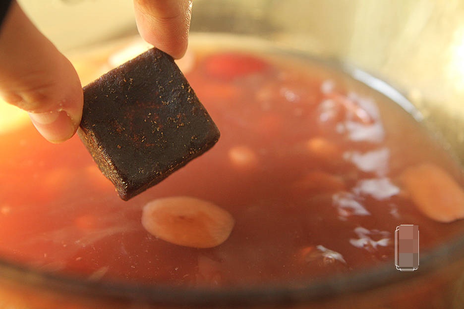 3. Thêm nước vừa đủ vào nồi (nếu bạn thích uống canh thì có thể cho thêm nước), bắt đầu đun với nước lạnh, sau khi nước sôi lớn thì chuyển sang lửa nhỏ và nấu từ từ trong 1 giờ (Nếu thấy các thành phần không đủ mềm, bạn có thể kéo dài thời gian đun).