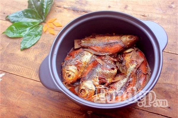 Cá diếc kho lá trà xanh là món ăn bình dị quen thuộc đối với