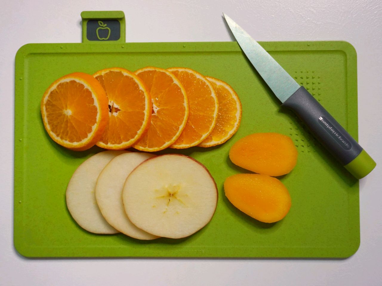 Bước 3: Cam táo thái lát; xoài gọt vỏ rồi thái lát.