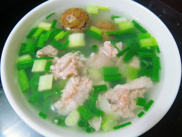 – Hành lá cắt bỏ rễ và sửa sạch thái nhỏ