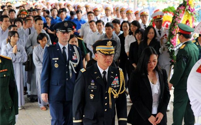 Nhiều đoàn tùy viên quân sự các nước đến viếng, trong đó có tùy viên quân sự Đại sứ quán Hoa Kỳ tại Hà Nội |
