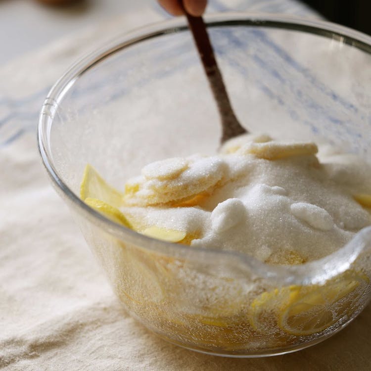 Bước 6: Cho chanh vào thố, thêm gừng, đường, mật ong và nước cốt chanh vào trộn đều. Để ở nhiệt độ phòng khoảng 30 phút cho đến khi đường hơi tan chảy.
