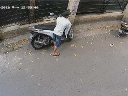 Xem camera an ninh, anh Quang thấy một nam thanh niên dáng người gầy, bịt khẩu trang và đội mũ lưỡi trai đã phá khóa xe rồi nổ máy phóng đi.