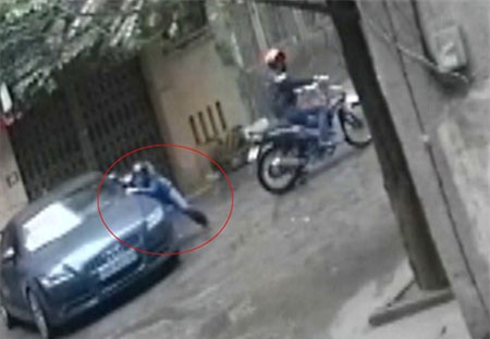 Đỗ chiếc Audi TT cách nhà 50 mét để vào trong lấy đồ, ít phút quay ra, anh Quân tá hỏa thấy trộm bẻ gãy hai gương. Camera ghi lại cảnh kẻ gian vặt đồ chỉ trong 3 giây.