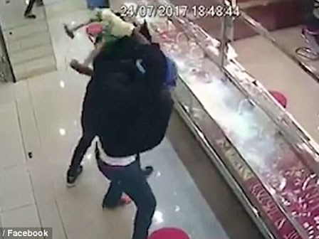Sau vụ cướp, tiệm vàng thông báo điều đáng buồn là hệ thống kính chống trộm bị phá hỏng nhưng trang sức vẫn còn nguyên.