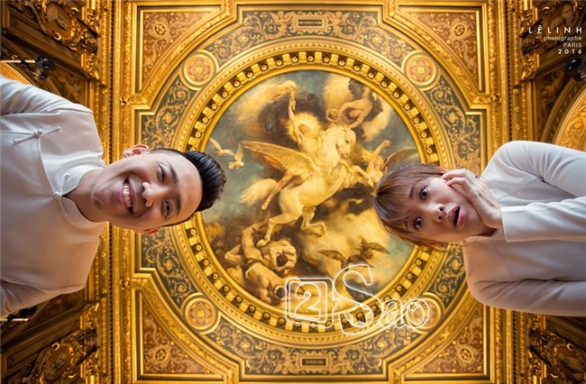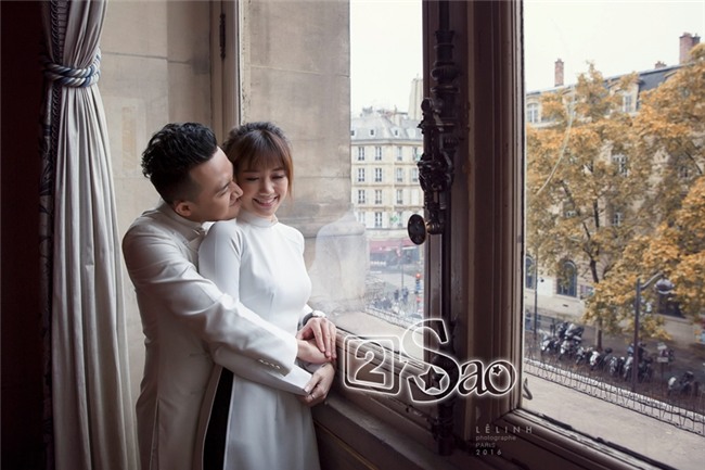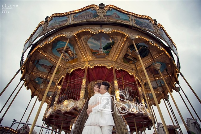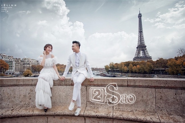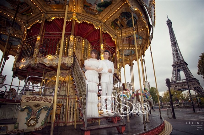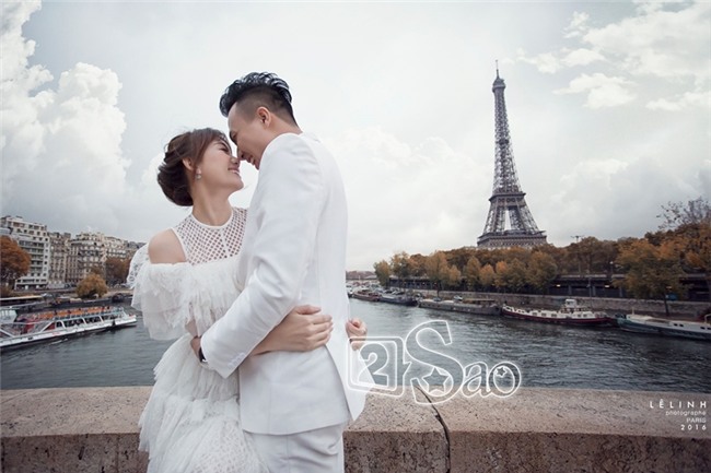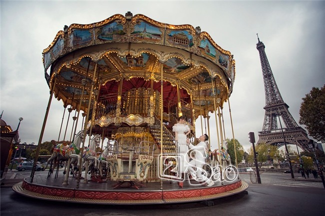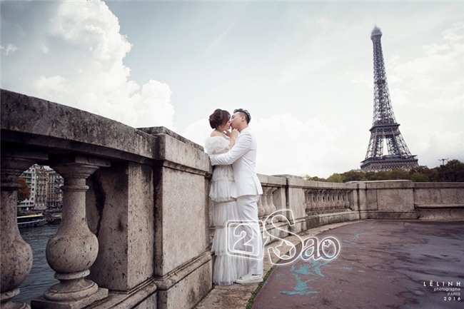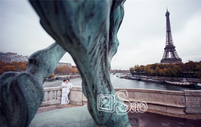 Biểu tượng của nước Pháp, cũng như Châu Âu là tháp Eiffel đã được ghi lại trong bộ ảnh cưới.