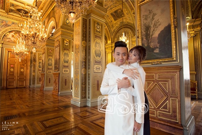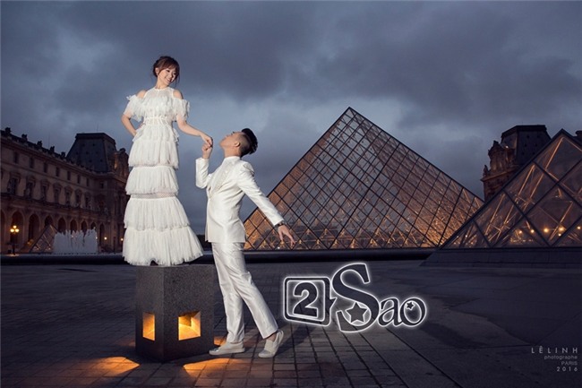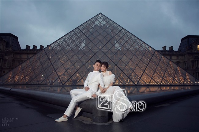 Bảo tàng Lourve về đêm cũng là một trong những địa điểm Trấn Thành và Hari Won lựa chọn để chụp ảnh cưới.