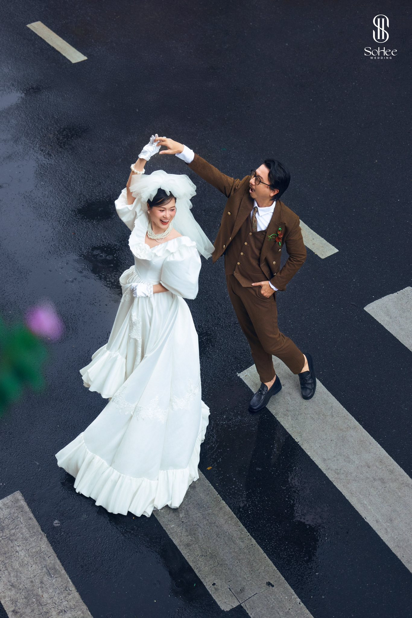 Bộ ảnh cưới kỉ niệm của cặp đôi được thực hiện theo phong cách Hong Kong - một trong những concept ảnh cưới đang gây sốt thời gian qua.Cô dâu Lâm Vỹ Dạ rạng rỡ, tươi tắn trong chiếc váy cưới bồng bềnh chất liệu vải trơn không bao giờ lỗi mốt. Điểm nhấn của trang phục chính là chiếc khăn voan đội đầu siêu to khiến nhiều người liên tưởng đến cảnh quay đám cưới của nhân vật Ae Soon (IU đóng) trong bộ phim đình đám "Khi Cuộc Đời Cho Bạn Quả Quýt".Trước đó, để thực hiện bộ ảnh cưới đáng nhớ, Lâm Vỹ Dạ tiết lộ đã giảm xuống 14kg trong 4 tháng. Chính vì vậy, "kiều nữ làng hài" được nhận xét nhan sắc ngày càng trẻ đẹp, thăng hạng khiến netizen không khỏi trầm trồ.