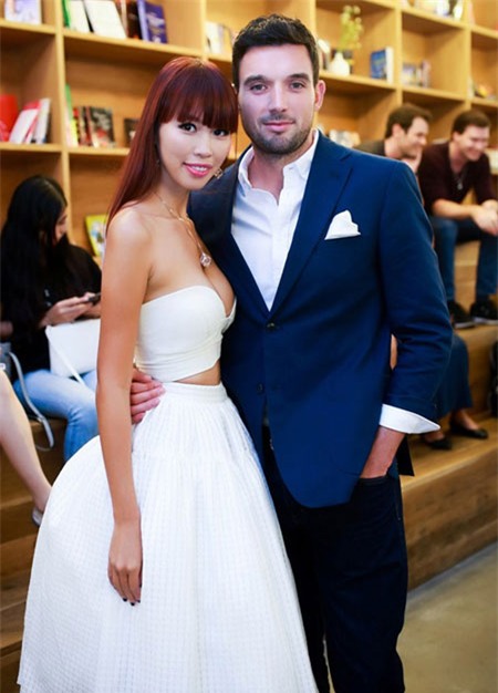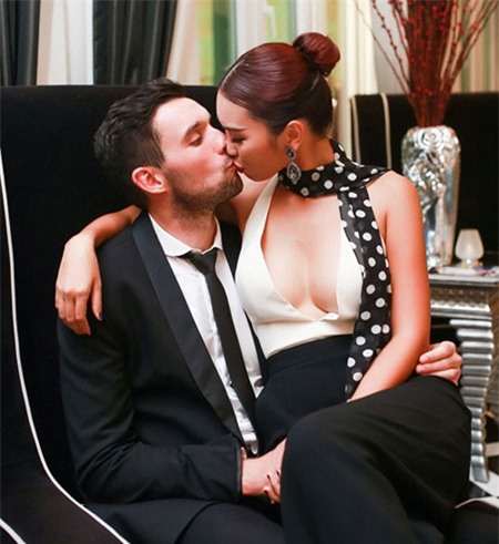 Hà Anh sánh vai bên hôn phu trong bộ đồ màu trắng. Chiếc áo cúp ngực quá trễ như sắp rơi khiến cô khoe trọn vẻ căng đầy |