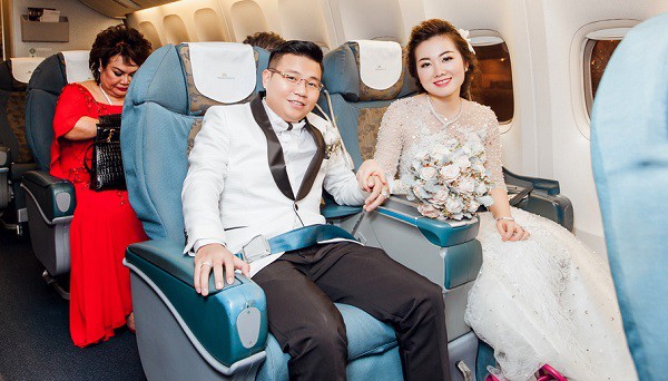 Cả cô dâu chú rể và quan khách đều ngồi trên phi cơ để "đưa nàng về rinh"