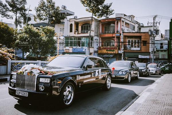Nổi bật nhất là dàn siêu xe khủng của các khách mời. Nguyên giá trị của vài chiếc xe cũng đủ mua biệt thự. Đại gia đất cảng còn chịu chơi mời thêm rất nhiều ca sỹ nổi tiếng hát trong ngày vui của con trai mình. Cô dâu xinh đẹp khiến nhiều người phải ghen tỵ khi có phúc vừa lấy được người tài giỏi lại vừa có điều kiện tốt.