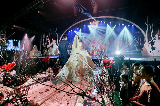 Tất cả những thứ làm người ta choáng ngợp bởi đám cưới này là một loạt những con số ấn tượng. 3,7 tỷ đồng là chi phí rạp cưới, nguyên số hoa tươi nhập khẩu chỉ để trang trí giá trị lên tới 2 tỷ đồng. Số khách mời ước tính là 1100 khách và mỗi mâm cỗ chưa tính đồ uống là gần 10 triệu đồng.