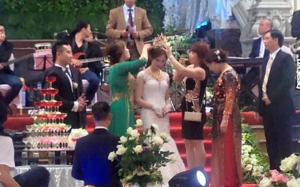 Cũng xa hoa và hoành tráng trong cách tổ chức nhưng đám cưới của cặp đôi này lại làm người ta ấn tượng bởi quà mừng là một chuỗi vòng vàng và hàng tập sổ đỏ nhiều không kể xiết.