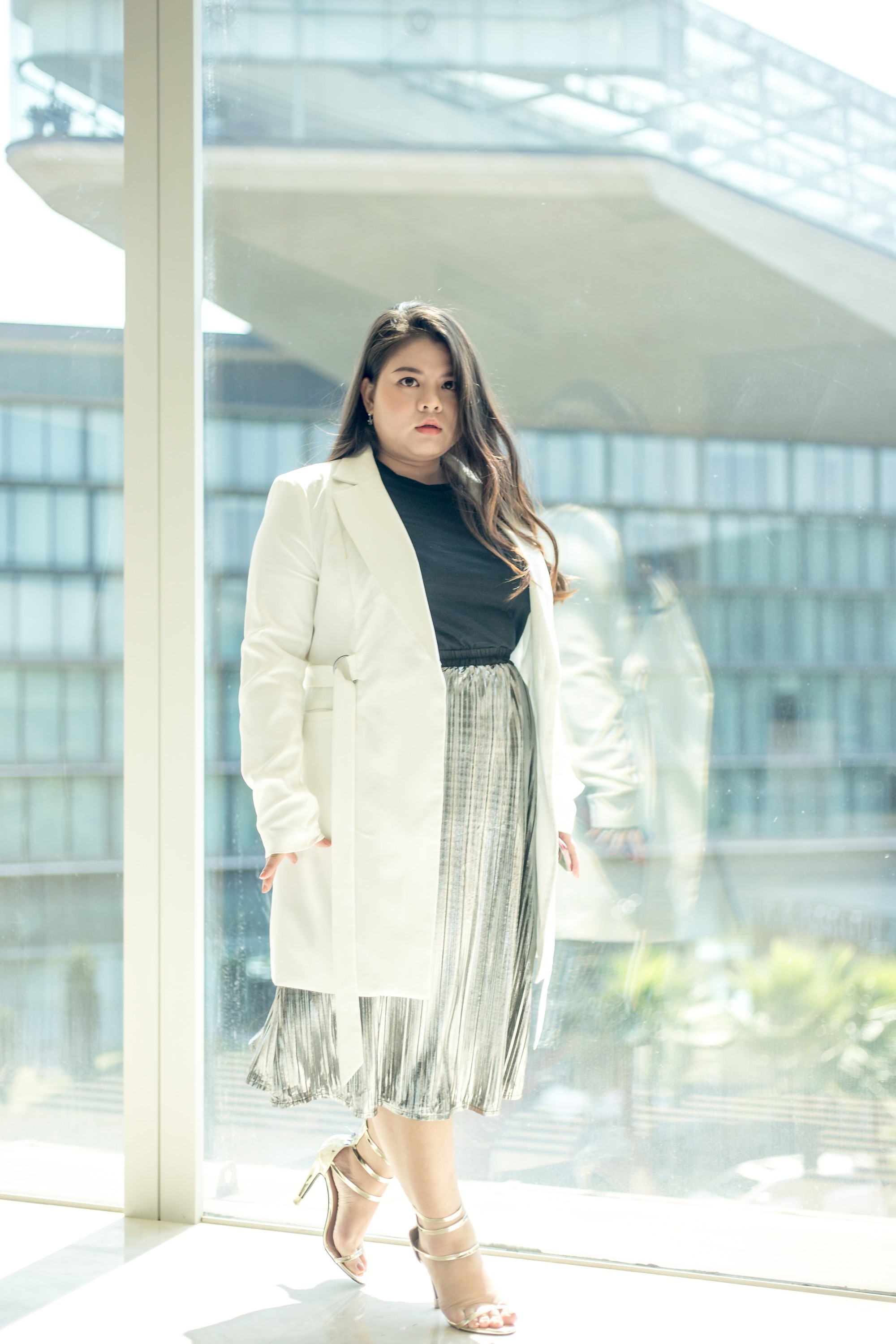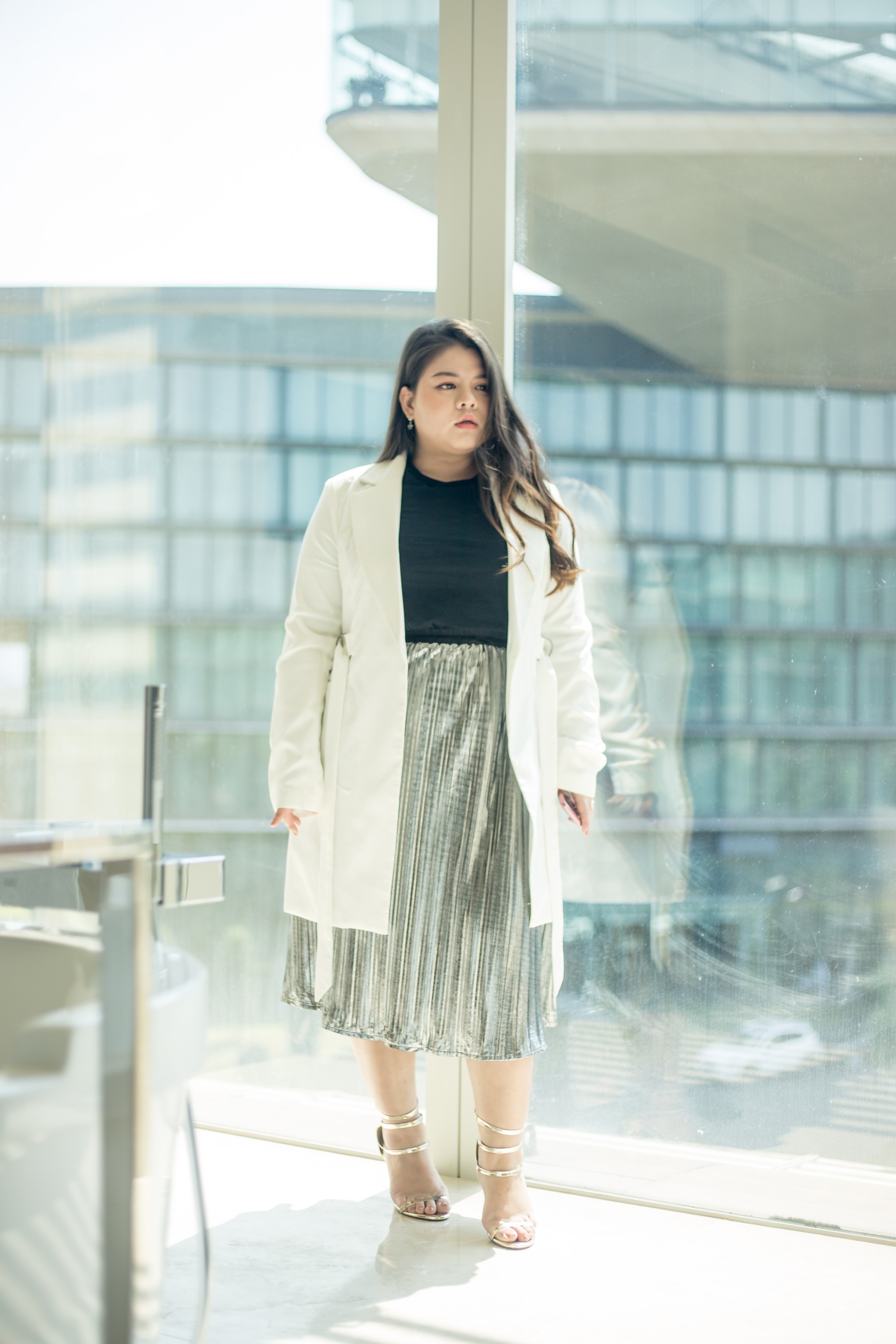 - Ưu tiên kết hợp với giày cao gót quai mảnh ankle trap hoặc ankle boots tạo cảm giác cao hơn.