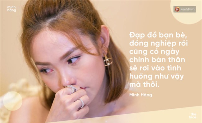 "Ai cũng được, trừ Minh Hằng ra". Đó là câu nói khiến tôi cảm thấy sụp đổ và không tin đây là sự thật. Nếu như BTC thông báo với tôi có người không muốn ngồi chung ghế nóng, tôi có thể hiểu rằng vì mối quan hệ giữa cả hai không tốt. Nhưng câu nói ấy đã thực sự làm tim tôi nhói đau.