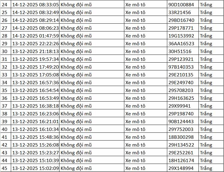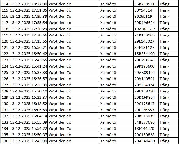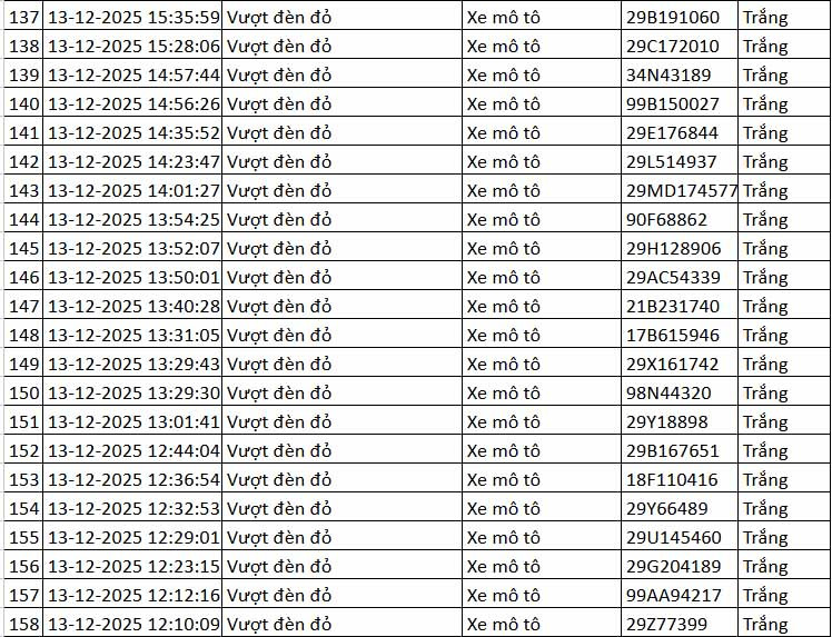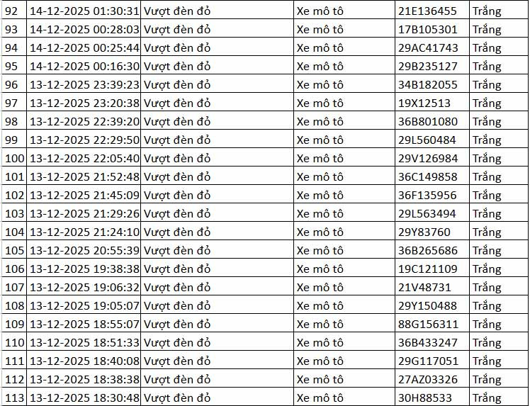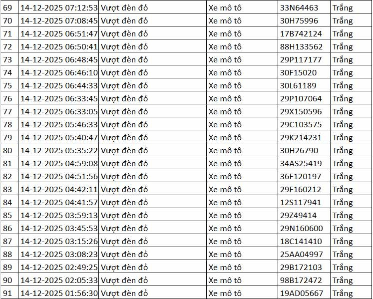 Cũng theo đại diện Cục CSGT, toàn bộ các phương tiện vượt đèn đỏ tại nút giao này là xe mô tô, xe gắn máy. Ngoài ra, camera AI tại đây cũng phát hiện 30 trường hợp tài xế xe máy không đội mũ bảo hiểm khi điều khiển phương tiện.