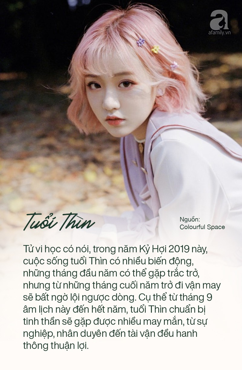 Tử vi học có nói, trong năm Kỷ Hợi 2019 này, cuộc sống tuổi Thìn có nhiều biến động, những tháng đầu năm có thể gặp trắc trở, nhưng từ những tháng cuối năm trở đi vận may sẽ bất ngờ lội ngược dòng. Cụ thể từ tháng 9 âm lịch này đến hết năm, tuổi Thìn chuẩn bị tinh thần sẽ gặp được nhiều may mắn, từ sự nghiệp, nhân duyên đến tài vận đều hanh thông thuận lợi. Bên cạnh đó, xung quanh tuổi Thìn sẽ có nhiều phúc khí, giúp tinh thần phấn chấn và thoải mái, làm việc gì cũng đạt hiệu quả tuyệt vời.