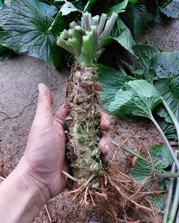 Cây trồng khoảng 15-18 tháng được thu hoạch. Tháng 3/2022, anh nhổ những củ wasabi đầu tiên trong vườn đem bán. Song, thay vì thu đại trà nhổ đâu hết đó, anh chọn cách thu tỉa, chỉ nhổ những cây đủ lớn còn cây nhỏ để lại. Mầm ở những cây lớn được tận dụng để nhân giống trồng tiếp.
