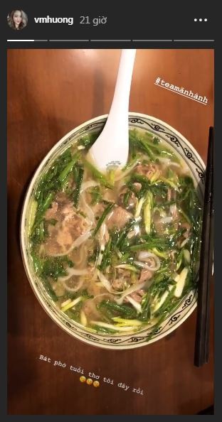 Được biết, trong đúng ngày người cũ kết hôn, Văn Mai Hương đã có mặt tại Hà Nội để tham dự sự kiện. Ngay sau khi ra Hà Nội, người đẹp đã tụ tập cùng bạn bè để đi ăn phở, món ăn được cô gọi là "bát phở tuổi thơ".