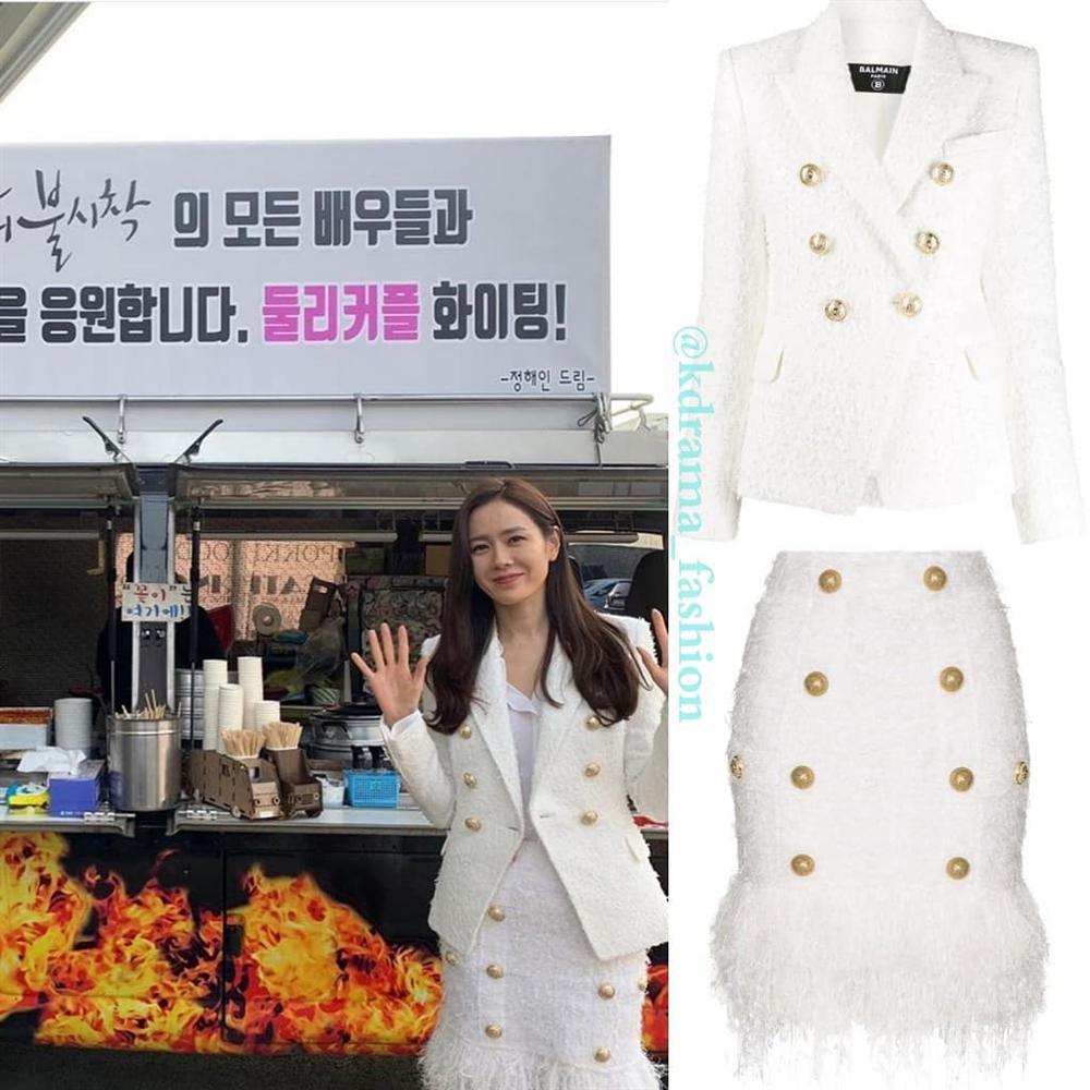 Diện thiết kế blazer Chanel trong tập 11 để đưa Jung Hyuk (Hyun Bin) đi mua sắm. Thiết kế vải tweed đúng chất tiểu thư đài các được Se Ri mix cùng khăn bèo nhúm siêu điệu. Thiết kế áo 8,300$ - khoảng 190 triệu, khăn quàng 1,900$ - khoảng hơn 43 triệu. Cùng với đó là chiếc túi xách Chanel trắng có giá 3,200$ - khoảng hơn 73 triệu. Và chắc chắn đây là set đồ đắt nhất trong tập 11 khi Se Ri trở về Hàn Quốc.