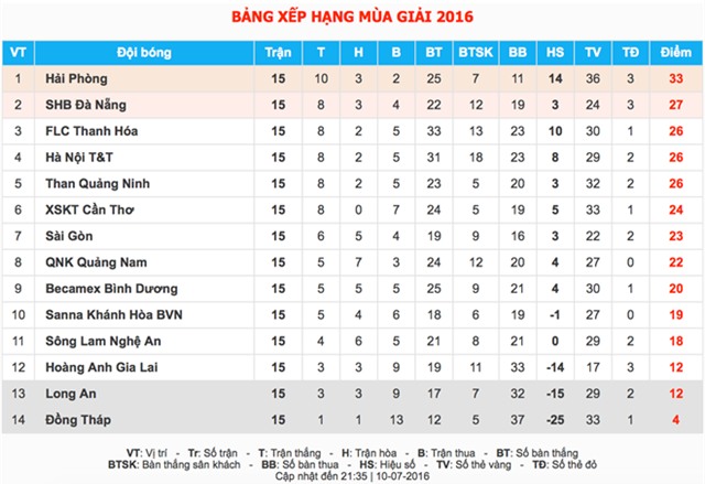 Nam 4-4 trên sân nhà trong khuôn khổ vòng 15 V.League 2016.