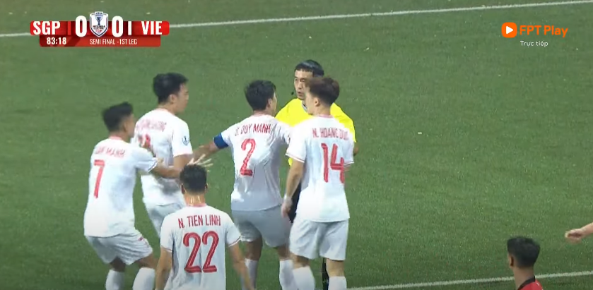 Việc không được công nhận bàn thắng khiến nhiều tuyển thủ Việt Nam nổi nóng và lao tới trọng tài. Tuy nhiên đội trưởng Duy Mạnh đã kịp thời làm dịu tình hình để tuyển Việt Nam tránh bị thẻ phạt không đáng có. Đồng thời, trung vệ 28 tuổi cũng yêu cầu trọng tài xem xét kỹ VAR để đưa ra quyết định công bằng.
