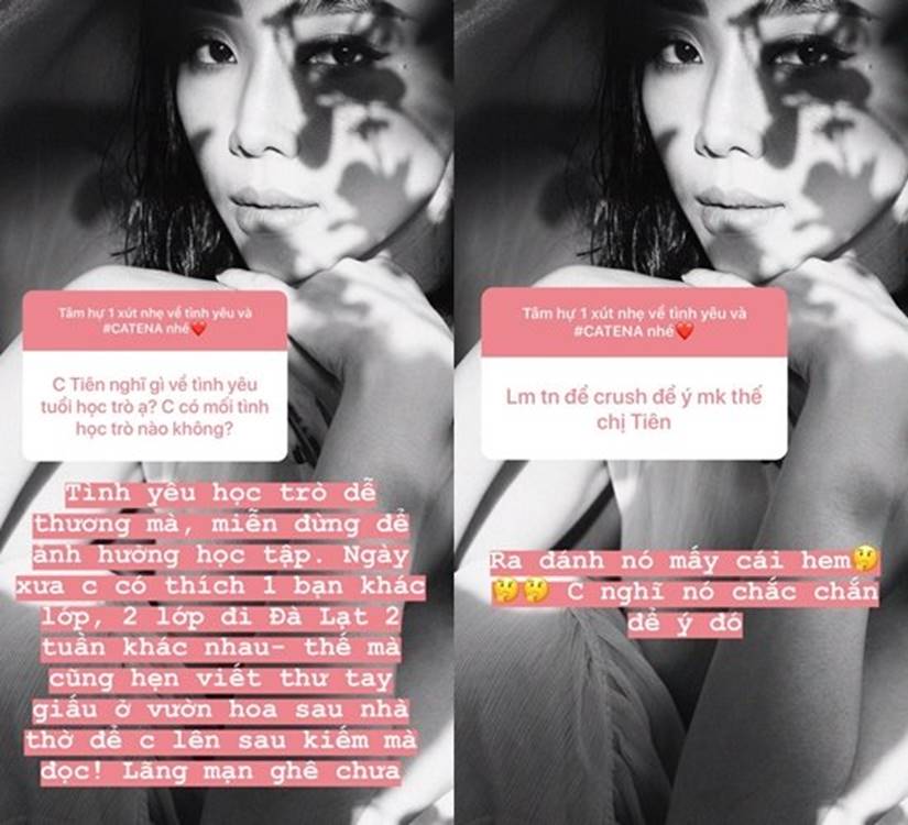 Nói về tình yêu tuổi học trò của mình, nữ ca sĩ tiết lộ: "Ngày xưa chị có thích một bạn khác lớp. Hai lớp đi Đà Lạt 2 tuần khác nhau, thế mà cũng hẹn viết thư tay giấu ở vườn hoa sau nhà thờ để chị lên sau kiếm mà đọc. Lãng mạn ghê chưa".