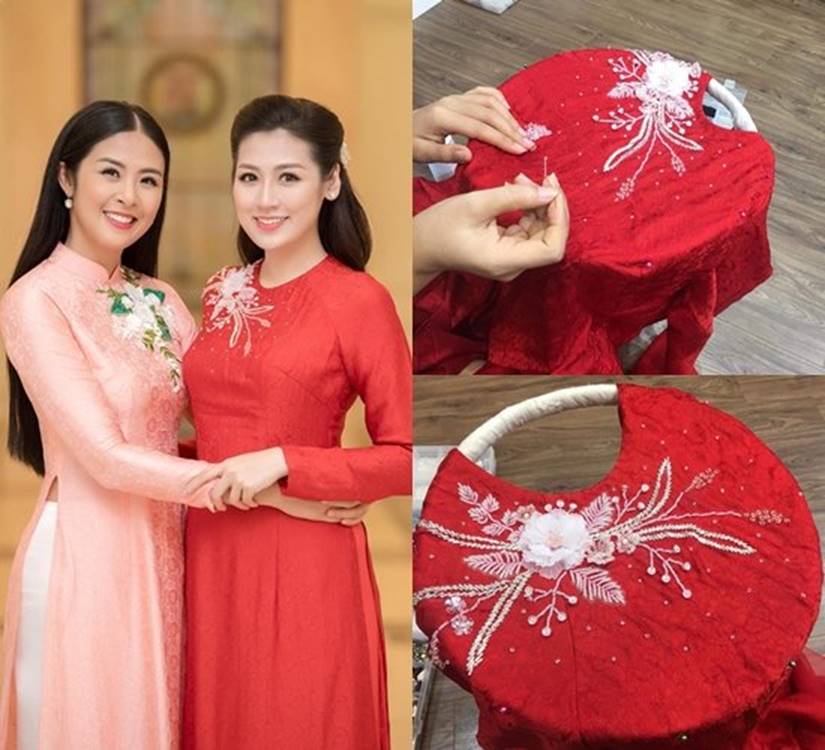 Ngày 21/7, Á hậu Tú Anh chính thức lên xe hoa cùng chú rể Gia Lộc. Để chuẩn bị món quà cho Tú Anh, Hoa hậu Ngọc Hân đã tự tay thiết kế chiếc áo dài cho người em thân thiết của mình. Cô viết: "Ý tưởng về một cô gái Hà Thành dịu dàng mà nổi bật trong ngày trọng đại khiến chị chọn một thiết kế áo dài đỏ trên nền lụa, với điểm nhấn đính hoa mộc mạc trên cổ áo dành cho em. Tự tay đi những đường kim mũi chỉ, tỉ mẩn đính hoa lên áo và thầm tưởng tượng Cám em của chị sẽ thật rạng rỡ, xinh tươi trong ngày trọng đại, chị cũng thấy háo hức. Cuộc sống của em sẽ bước sang một trang mới với nhiều những thử thách mà ở đó em đã 'dũng cảm' hơn chị rất nhiều rồi đấy".