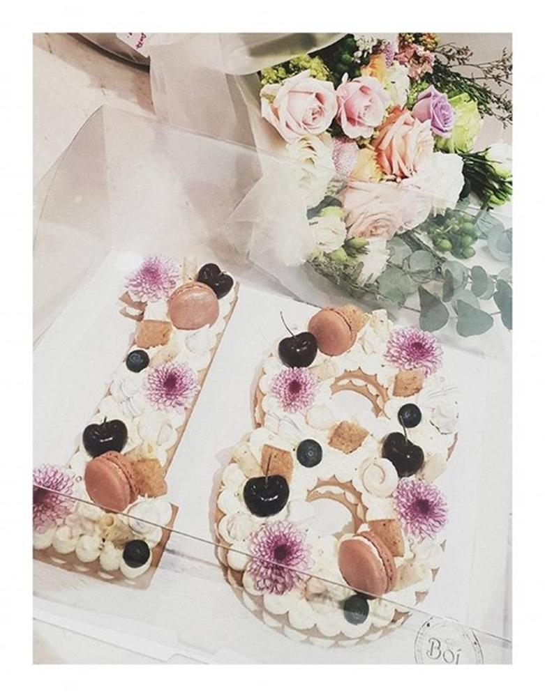 Thanh Hằng khoe món quà sinh nhật do người hâm mộ gửi tặng mình. Cô viết: "Ngộp vì hoa, lên cân vì bánh. Xin đừng tặng gì, chỉ cần thương Thanh Hằng thêm 1 chút là được. Giờ này mấy chục năm trước mẹ em mới chuyển dạ, mai con bé giò dài mới xuất hiện nha".